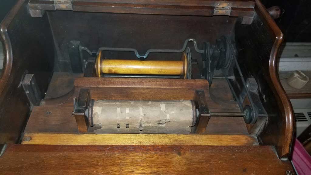 This an early style G circa 1915. It’s a favorite among collectors. It has 64 pipes and a piano with mandolin attachment as well as many percussion instruments (bass & snare drums, tympani, cymbal, triangle).